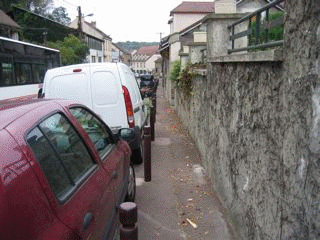 Dangereux : les trottoirs trop étroits obligeant le piéton à emprunter la chaussée.